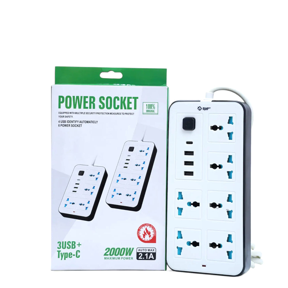 Includes 6 universal sockets to accommodate multiple devices simultaneously, making it perfect for busy setups.