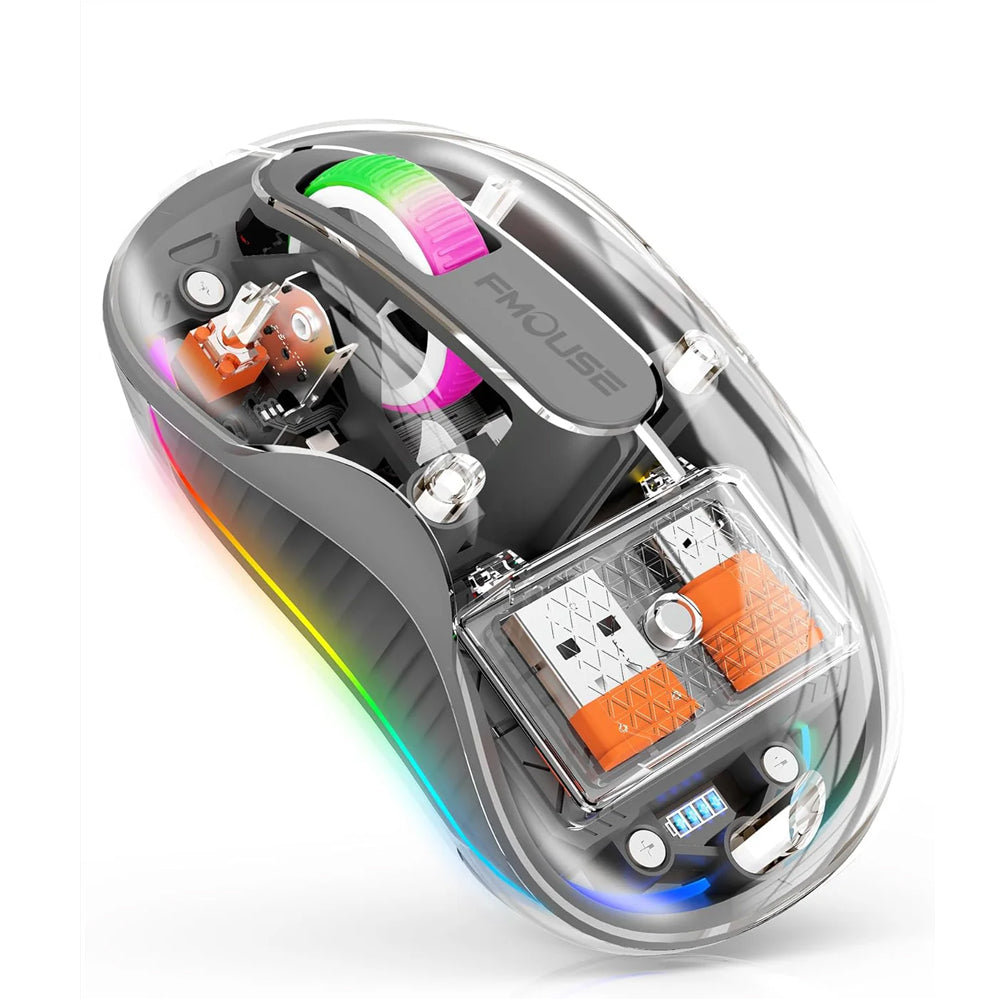 Elevate Your Workspace Aesthetic Step into the future with a mouse that looks as good as it performs. The Compro™ Transparent Mouse features a high-grade, see-through polycarbonate body that reveals its inner workings, making it the perfect centerpiece for a modern desk setup.